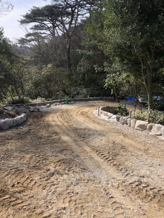 着手前の写真にあるように、もともと法面を保護する為の土留めの新設と暖かくなると人の背丈ぐらい伸びる雑草を改善する工事でした。