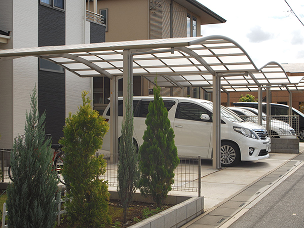 今回は、もともと駐車場だったところにカーポート及び自転車の雨除けの屋根を施工しました。また、駐車場の補強コンクリート土間及び木柵も手掛けました。